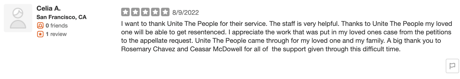 “ Thanks to Unite The People my loved one will be able to get resentenced.”